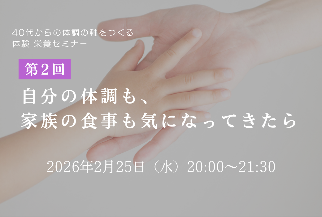 自分の体調も、家族の食事も気になってきたら 自分のケアと家族の食事、どちらも大切にしたい40代女性へ。無理なく両立するヒントをお伝えします。 |